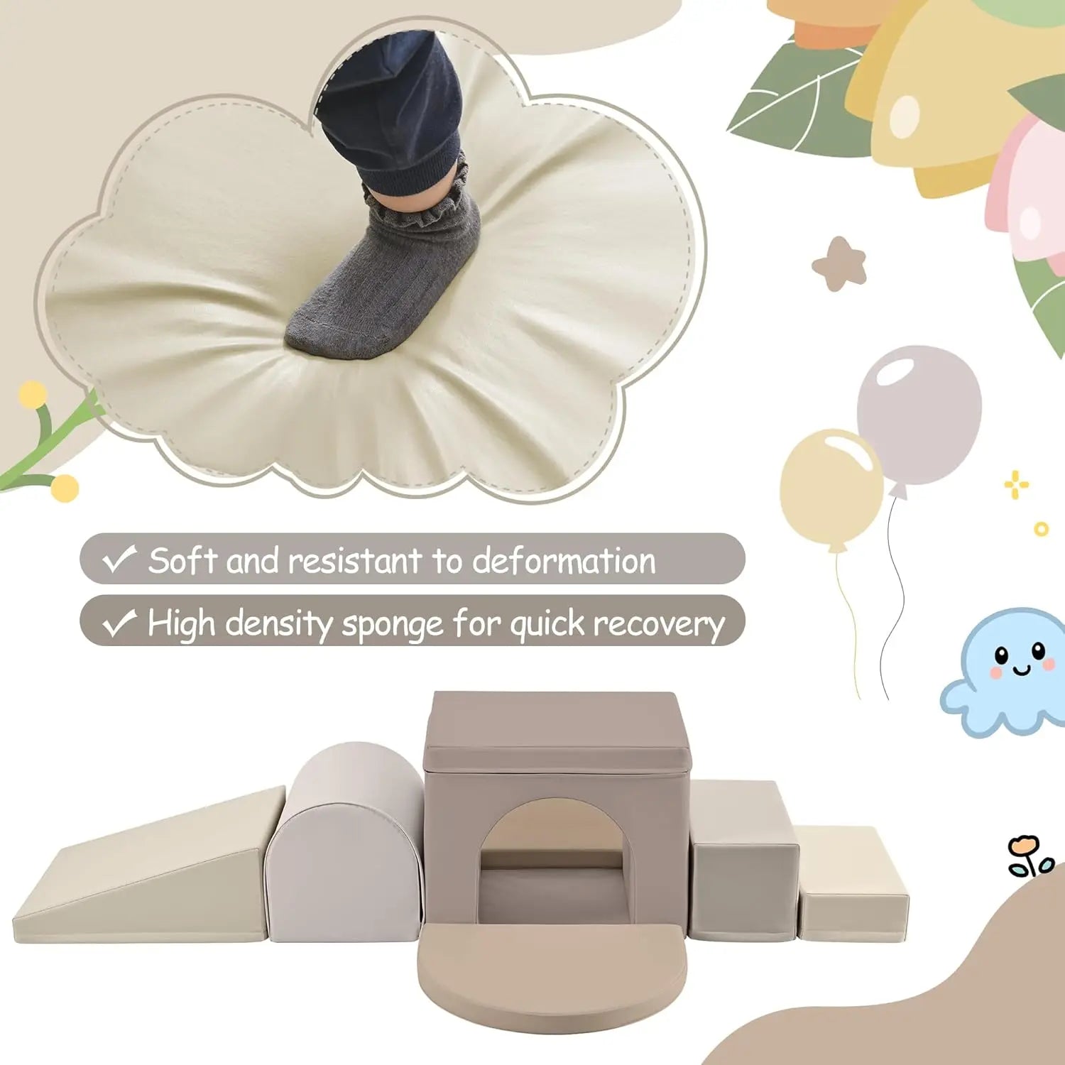 SHXICN Indoor Foam Tunnel Climber Toddler Playset 7 Piece